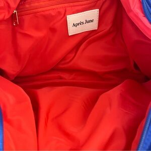 Apres June The Bäg Blue in very excellent pre worn condition. Like new. The Bäg is the perfect everyday crossbody, crafted from lightweight, water-resistant nylon for effortless durability. Designed for all-day wear, it features an adjustable plush strap for a comfortable, customizable fit. Sleek yet functional, this versatile bag keeps your essentials secure while adding a modern touch to any outfit. Ideal for travel, errands, or daily adventures. Please see all photos.
