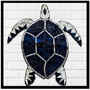 Take a trip under the sea with this stunning mosaic Turtle Wall Decor! This turtle is embellished with varying shades of blue mosaic tiles and reflective mirror pieces making up the shell outline. With shimmering gold and blue patches throughout, this sea creature is a great marine addition to any coastal bathroom scene. Perfect for adding a touch of elegance to any space. The Sea Turtle symbolizes longevity, wisdom, and tranquility!