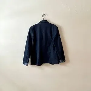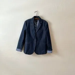 Gap Navy Blue Denim Pinstripe Lined Single Button Collared Fit & Darted Blazer 8