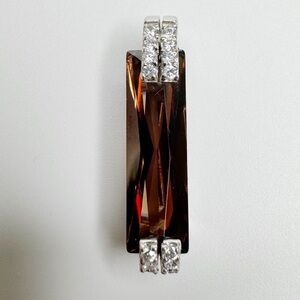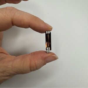 Brown Crystal Sterling Silver Pendant Smoky Glass Emerald Cut Accent Stones 925