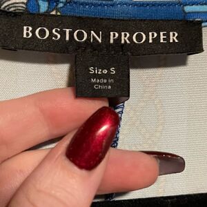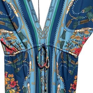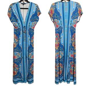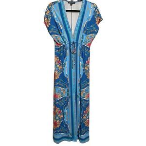 Boston Proper- Women’s Border Scarf Print Blue Floral Maxi Dress, Size Small