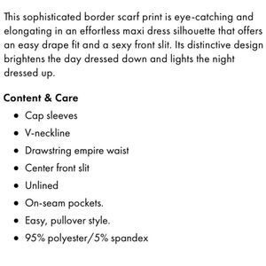 This sophisticated floral status border print is colorful and elongating in an effortless maxi dress silhouette that offers an easy drape fit and a sexy front slit. Its distinctive design brightens the day dressed down and lights the night dressed up.