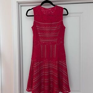 Elegant red lace sleeveless dress. Perfect for special occasions. Has beige built-in slip inside. Never worn.