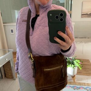 Coach Legacy Brown Suede adjustable strap crossbody shoulder Bag gold accents