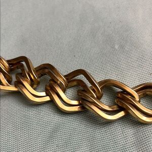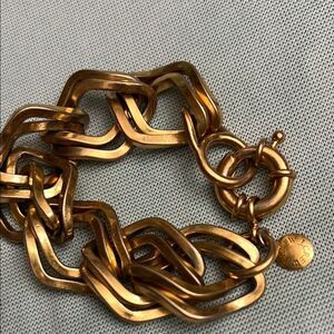 This exquisite J. Crew bracelet showcases a striking gold chain-link design, featuring large, interlocking oval loops that create a bold and eye-catching appearance. The smooth, polished surface enhances its luster, making it a standout accessory for any occasion. Its substantial links add a touch of elegance and sophistication to your ensemble.