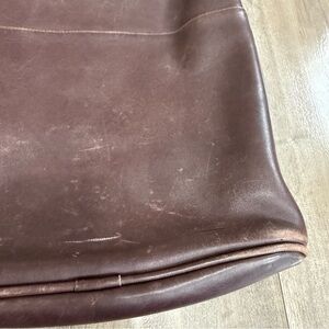 Vintage Coach 90s Whitney Saddle Bag Crossbody Brown Leather Messenger Purse. Perfect for a lover of vintage 90s Coach, large crossbody messenger bags, and a great project. This bag has a large flap pocket with a suede lining. There are lots of pockets and slots to put items. The hardware is a brassy gold color and the bag is a true brown color. This bag is very loved and so there are a lot of markings on the leather, wear to the strap, areas near seams, and the lining. It does not have the Coach tag on the strap anymore, but the inside leather flap still has the original Coach information. It is a really excellent piece, it just needs some TLC to bring it back to life. Measurements and condition are shown in the photos.