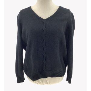 Talbots Woman 2X Black V-Neck Wool Sweater