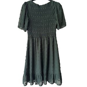 BTFBM Dark Green Mini Boho Smocked Floral Swiss Dot Short Sleeve Dress