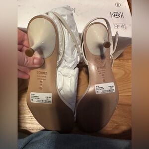 NEW Schutz Helene Kitten Heel Strappy Gladiator Sandal in Deluxe Nappa Pearl