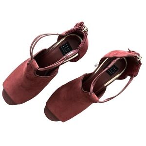 Step out in style with these elegant burgundy peep-toe booties. Perfect for any occasion, these shoes offer both comfort and sophistication.Size 8. Never worn, in box.