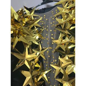 NWT Mew Mews Black Plunge-Neck Gown with Gold Star Appliques Statement Dress