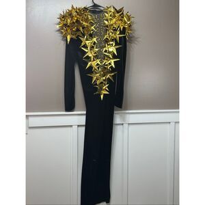 NWT Mew Mews Black Plunge-Neck Gown with Gold Star Appliques Statement Dress XS