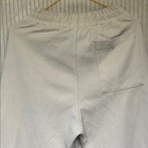 Stylish cream jogger pants. Elastic waistband with drawstring. Comfortable and versatile.
