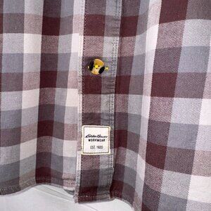 Eddie Bauer Workwear Shirt Mens Large Foreman Fit Brown Gray Plaid