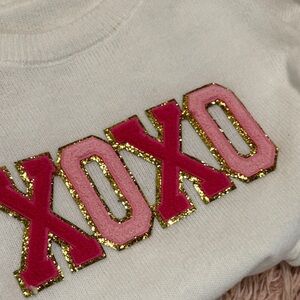 Elevate your casual style with this chic white sweatshirt featuring a vibrant pink 'XOXO' design. Perfect for everyday wear.