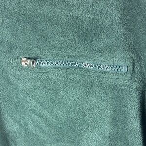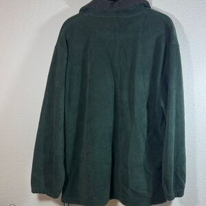Stay warm and stylish with the Men's Green Fleece pullover. Perfect for casual outings, this pullover offers comfort and a sleek look. Zippered breast pocket and zipper front. Size XL