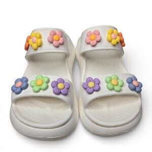 Croc White Chunky Platform Sandals Women Flower Gibbitz Charms W9