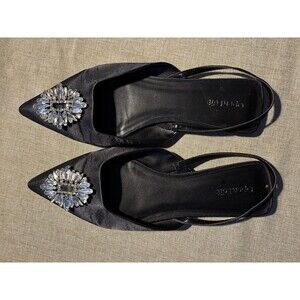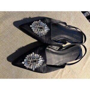 Open Edit Nordstrom Satin Pointed Flats Sling Back with Diamonds Size 9 Black