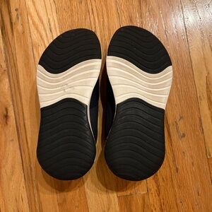 These shoes are super comfy! The outside looks like new. There’s a very small tear on the inside in the back (not visible when wearing), shown in 4th picture.