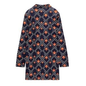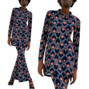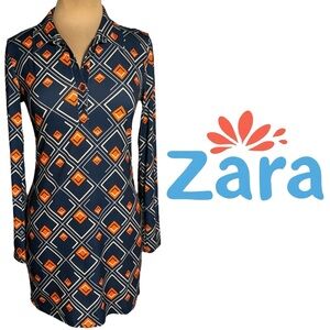 ZARA navy and orange retro mod geo print tunic top mini dress Size Medium