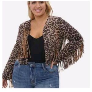 3/$19 VOCAL USA cropped western fringe leopard print jacket open front cardigan top
