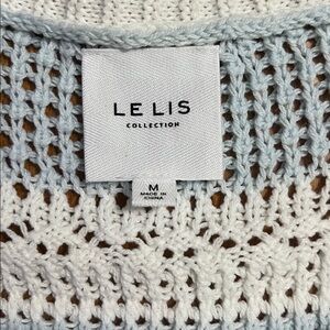 Le Lis Collection Striped Striped Crochet Cardigan Sz M Blue Coastal Boho Cozy