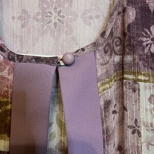Lavender/Purple Patterned Sheer Jacket with one button. Size 6