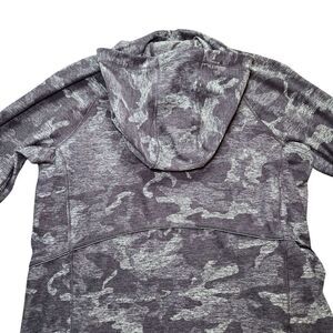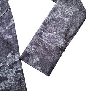 Lululemon Warm Stabilizer 1/2 Zip Hoodie in Incognito Camo HTR Black, size 6. From cozy run comfort to post-sweat bliss, this soft and warm hoodie is a winter workout wonder. Stretchy, naturally breathable Rulu fabric is sweat-wicking and buttery soft.
