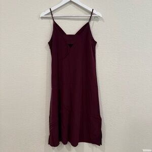 Chic deep burgundy red midi dress with a sleek silhouette — in the “Cognac” colorway. Perfect for versatile styling.