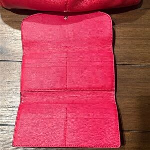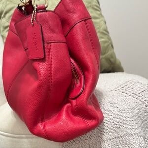 Coach 2 piece set. Elegant bright pink pebbled leather shoulder bag and matching long wallet. Features gold-tone hardware. VGUC Perfect for any occasion.