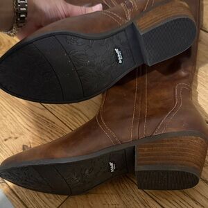 Step out in style with these elegant brown knee-high leather boots. Perfect for any occasion, they offer both comfort and sophistication.