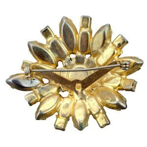 Vintage Rhinestone Brooch Pin Amber Citrine Topaz Colored Starburst Domed Floral
