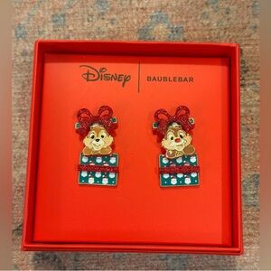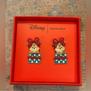 Brand New Disney X Baublebar Holiday Chip & Dale Jumping Out Of A Present Stud Earrings