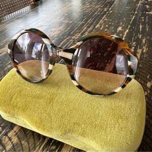 Step out in style with these authentic Gucci sunglasses featuring a green and white marble frame and chic rounded circle lenses — a perfect mix of modern luxury and vintage charm. 🕶️💚