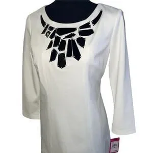 NWT! Vince Camuto Light Cream Shift Dress with Beautiful Neckline - Size 6