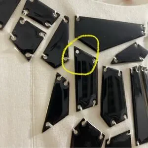 This dress is brand new and never worn. However, there is one strand of yarn missing from one of the mirrored pieces. A new piece of yarn can easily sow this back. Its not that noticeable so you can also wear as is. (Please see last pic).