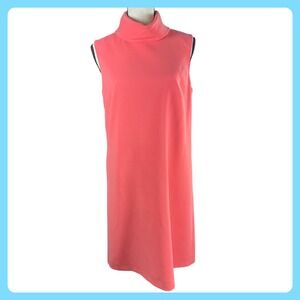 Sleeveless Coral Pink Shift Dress Mock Turtleneck Mod Style