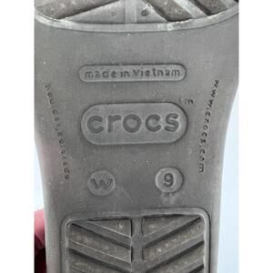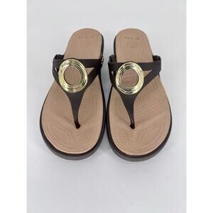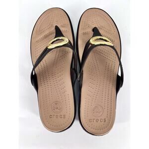 Crocs Sanrah Wedge Brown Beige Flip Flop Sandals Women's Size 9 Shoes Gold Accen