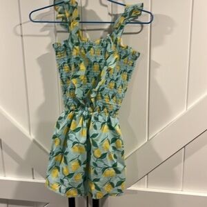 Janie and Jack Lemon 🍋 Printed Cotton Smocked Romper. Girls size 12. EUC!!