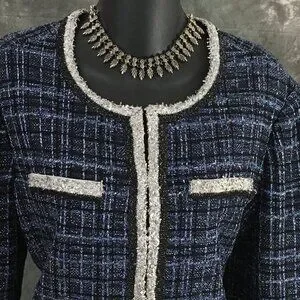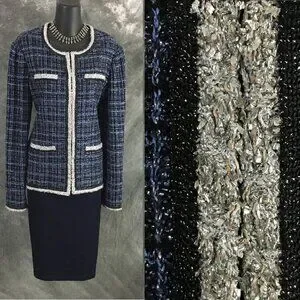 BEAUTIFUL st john knit Blue silver shimmer jacket skirt suit size 8 10
