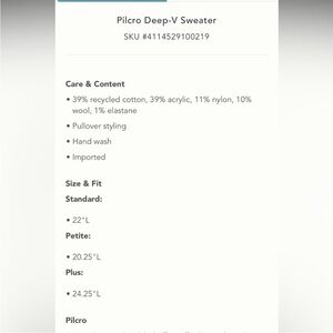 Anthropologie NWT Pilcro Deep-V Sweater Size
