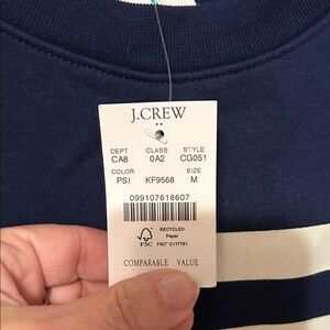 J. Crew: Navy and White Striped Sweatshirt with Gold Buttons. Med. NWT.