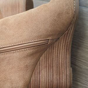 Lucky Brand Yakeena Suede Booties Size 8.5 Leather Upper Camel Brown