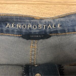 Aéropostale Women's Blue High-Rise Ripped Knees Flared Jeans
