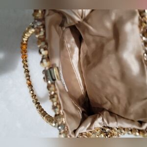 This stunning gold beaded bag is perfect for any occasion. Its intricate design adds a touch of elegance to your outfit. Ideal for evening events or a night out.