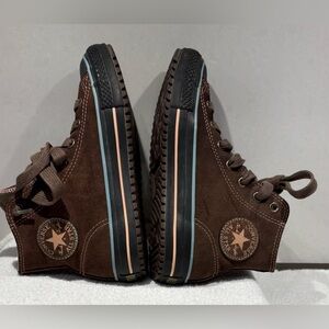 Step out in style and comfort with these unique Converse All Star high-top sneakers. These aren't your average Chucks-they feature a durable suede leather upper in a rich, chocolate brown, perfect for fall and winter.