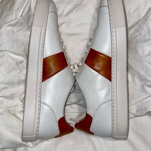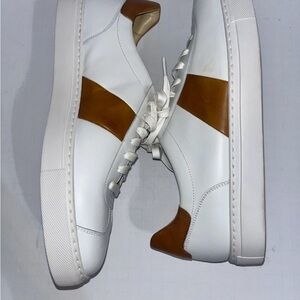 Elevate your look with Magnanni sneakers. Sleek white leather with tan accents. Perfect blend of style and comfort. NWOB, never been worn. (These were display shoes with small discoloration spots in a couple of places, see photos). Other than that, they are in perfect condition.