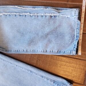 Distinctive frayed raw-edge seaming running down the outer leg giving a vintage trendy look.