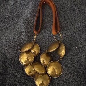 This showstopping necklace is the perfect accessory this season. Made with the finest Moroccan leather and brass. Adjustable leather strap for easy-wear.