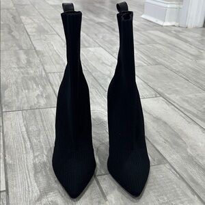 Steve Madden Doler Black Ribbed Knit Stiletto Booties